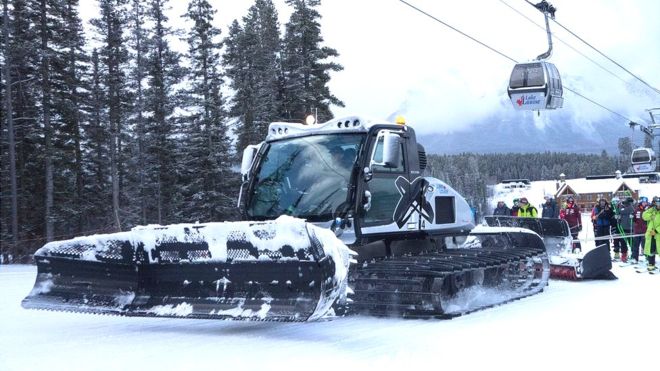 Первым спустился парень пострадавшей Антон. После него на трассу выехал ратрак, который начал спускаться по склону.