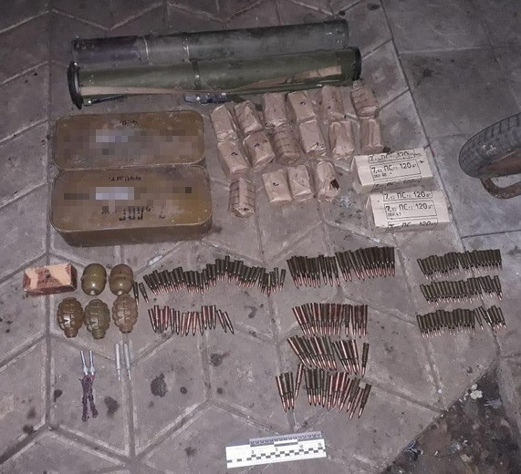 — Оперативники спецслужбы установили, что действующий военнослужащий в 2015 году незаконно вынес с территории своей части оружие и боеприпасы и хранил их в тайнике во дворе бывшей жены в Краматорске. Из схрона сотрудники СБУ совместно с Нацполиций изъяли 1600 патронов различного калибра, две гранаты РГД-5, три гранаты Ф-1, два ручных противотанковых гранатомета РПГ-26 и РПГ-22 и тротиловую шашку весом 400 граммов, - говорится в сообщении.