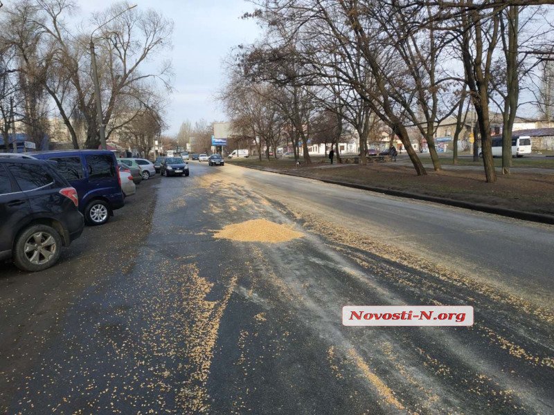 В Николаеве на дорогу высыпалось 10 тонн кукурузы