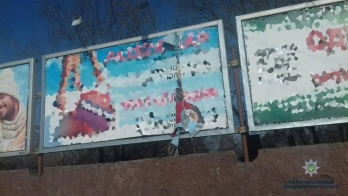 Сегодня, 7 марта, примерно в 2 часа дня поступил вызов о том, что двое неизвестных мужчин выломали металлическую конструкцию одного из рекламных щитов на перекрестке проспекта Центрального и Херсонского шоссе и ушли в неизвестном направлении.