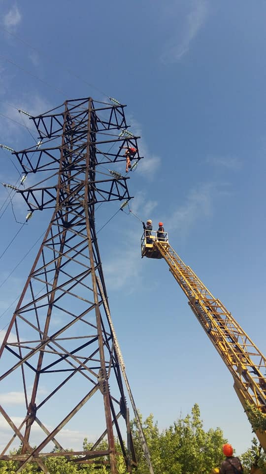 В селе Панкратово Арбузинского района Николаевской области двое подростков (9 и 11 класс - прим.) для фото залезли на анкерную металлическую электроопору высокого напряжения на высоту около 30 метров.