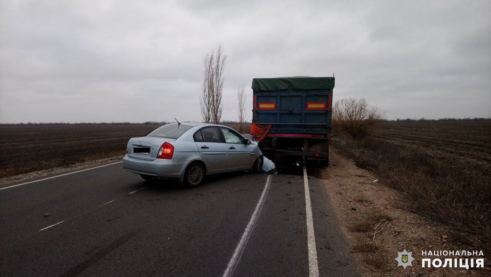 Вчера утром, 14 ноября, в Николаевской области водитель автомобиля Hyundai Accent въехал в грузовой автомобиль КАМАЗ, который стоял на обочине.