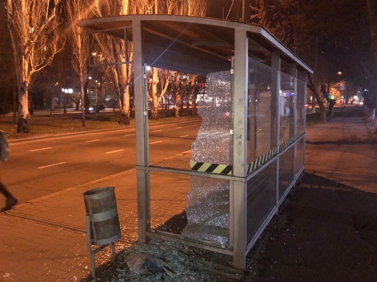 Вечером, 8 января в Николаеве неизвестные разбили стекло остановки общественного транспорта «Инженерная» по проспекту Центральному.