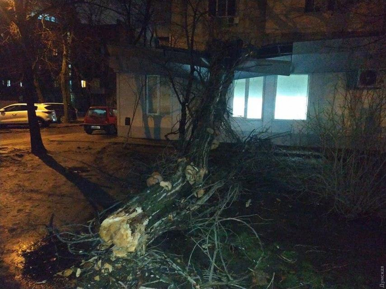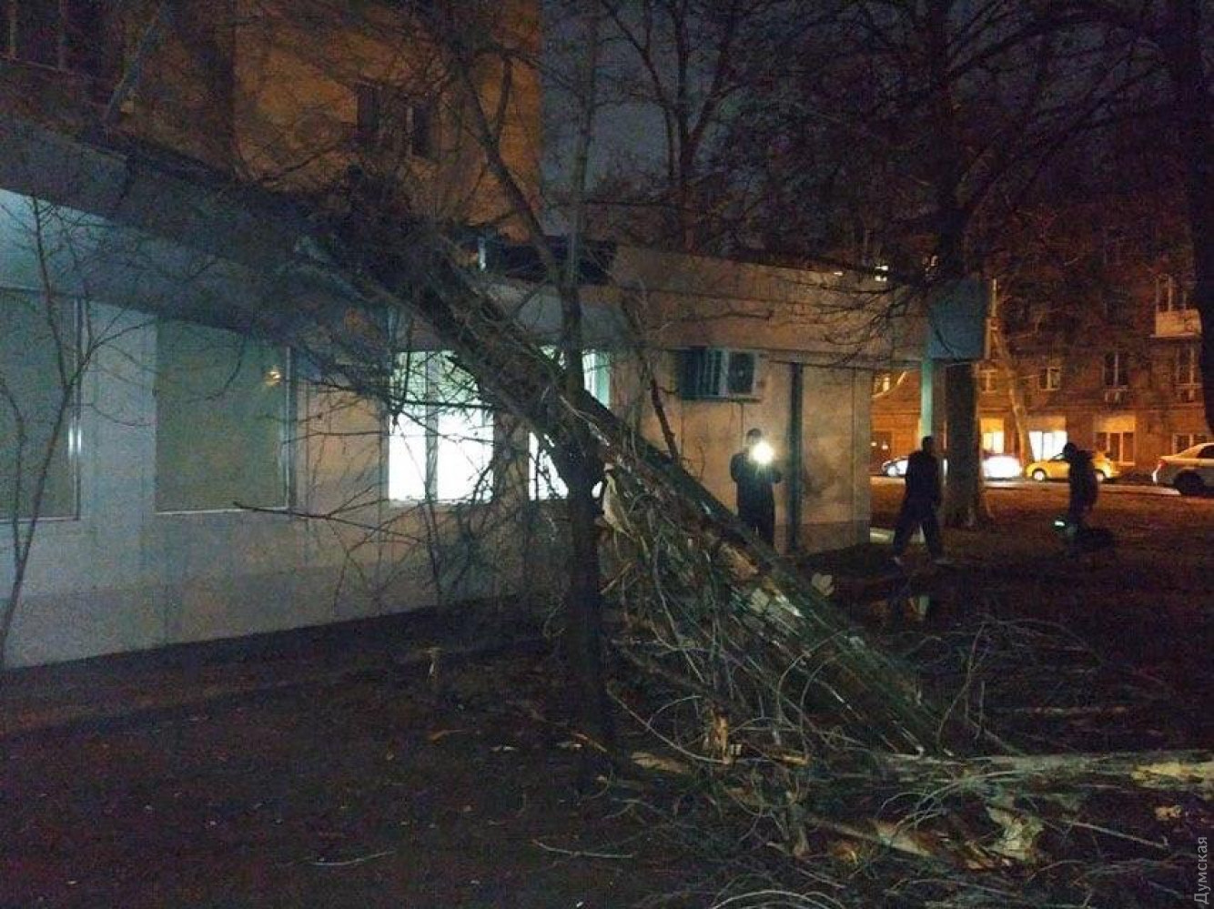У дома №19 по Сегедской рухнула сухая акация. Она повредила пристройку, в котором размещается отделения банка «Аваль». Жертв и пострадавших нет.