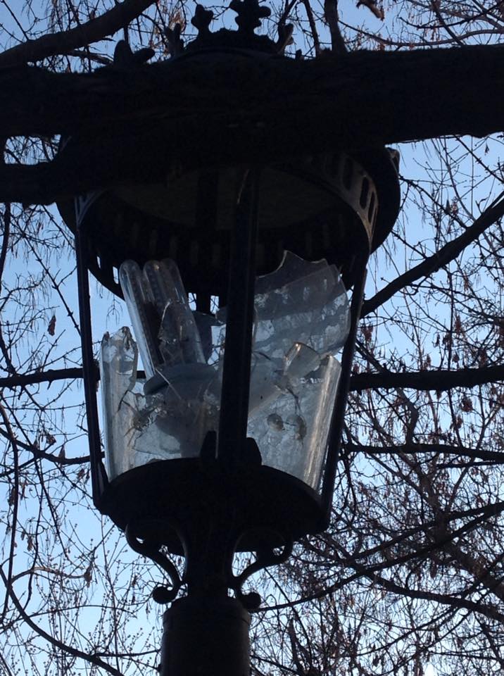 В Николаеве неизвестные разбили и вырвали провода из декоративных фонарей на Флотском бульваре.