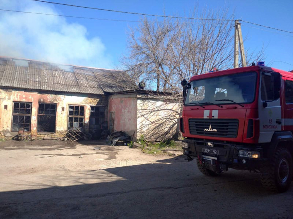 В Вознесенске на улице Киевская спасатели тушили пожар в ремонтной мастерской.