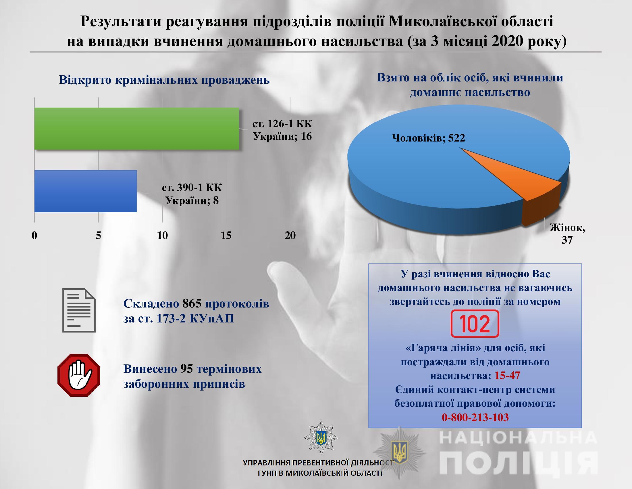 С начала 2020 года в Николаевской области полицейские открыли 16 уголовных производств и 865 протоколов по фактам домашнего насилия.