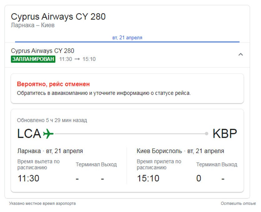 Так, во вторник, 21 апреля, множество граждан Украины приехали в аэропорт Ларнаки в надежде улететь домой. Однако на борт никого не пустили, так как пассажиров отказались принять в украинском столичном аэропорту «Борисполь».