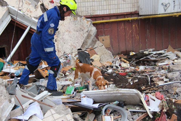 Спасатели разбирают завалы небольшими группами по три-четыре человека, поскольку есть угроза обрушения строительных конструкций.