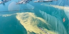 В разгар курортного сезона вода в Черном море у побережья Одессы окрасилась в зеленовато-желтый цвет.