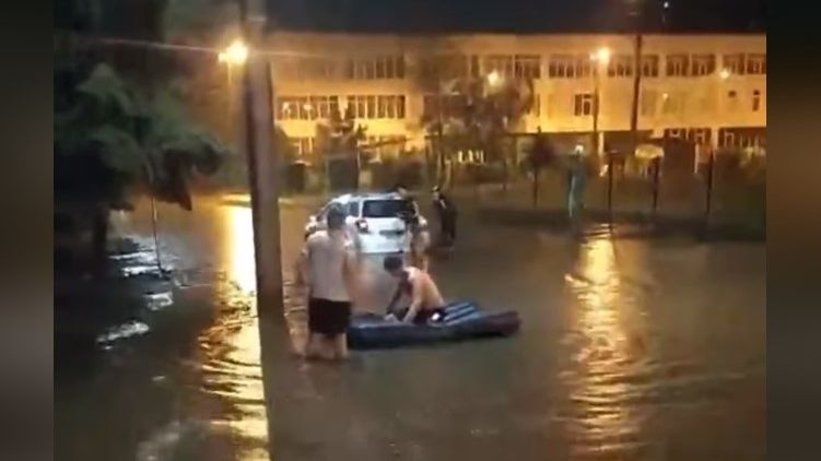 Как сообщают пользователи соцсетей, утром уровень воды в некоторых районах города доходил до колена, а машины передвигались по фары в воде. Кроме того, обильные осадки затруднили передвижение транспортных средств.