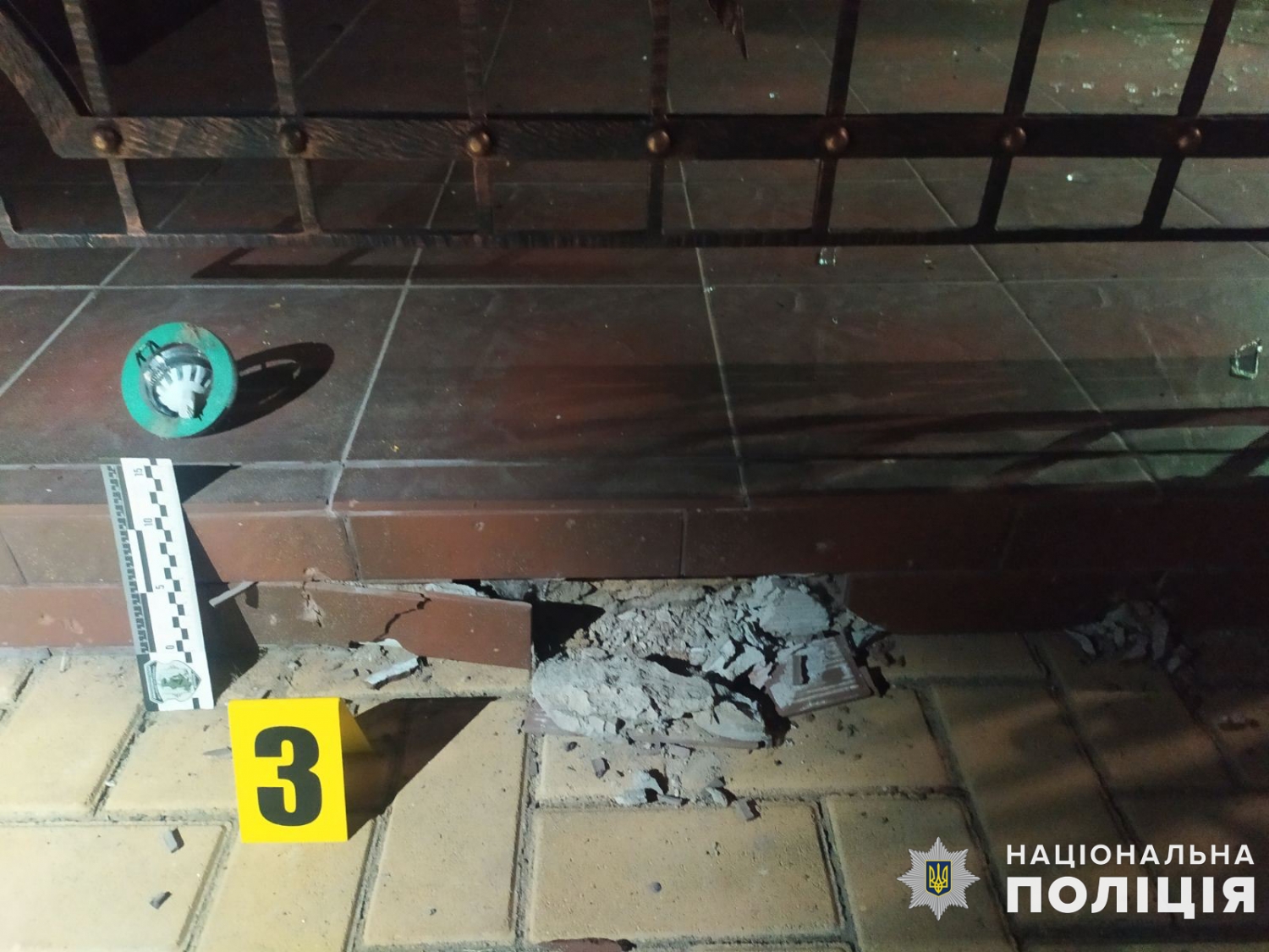 В результате взрыва были повреждены тротуарная плитка, оконное стекло и автомобиль. При этом никто из жильцов дома не пострадал.
