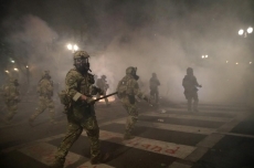 В Портленде около тысячи протестующих собрались у здания суда и начали трясти укрепленное ограждение. Позже протестующие прорвались через укрепленное ограждение вокруг здания суда.