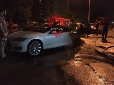 Огонь повредил три транспортных средства — «Тесла» и две припаркованные рядом машины «Мазда» и «Хонда», принадлежащих местным жителям.