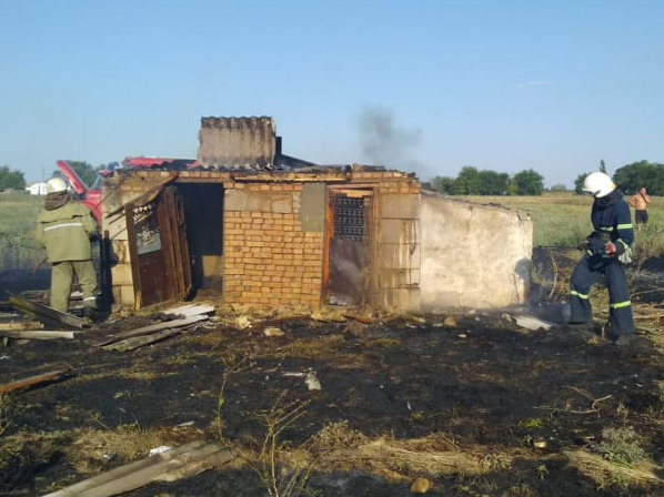 В Витовском районе в селе Оленевка на улице Апрельской горела сухая трава на площади 2 000 м² и хозяйственная постройка на площади 20 м².