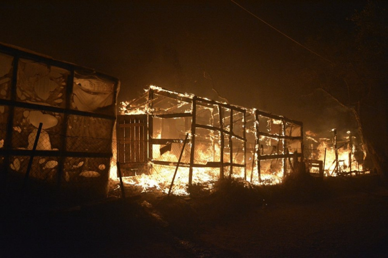 — В результате пожара уцелели лишь несколько палаток. После начала пожара беженцы направились в сторону портового города Митилини и полиция заблокировала их, - сказано в сообщении.