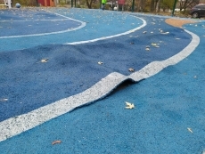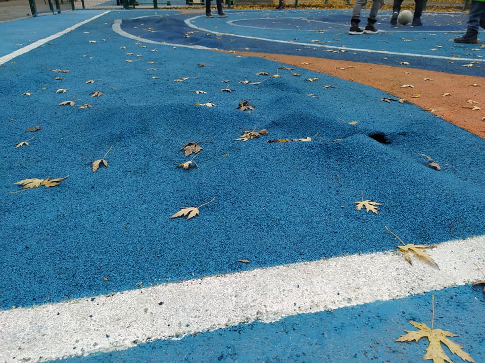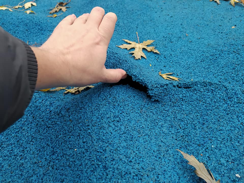 В Николаеве вздулось и порвалось покрытие спортивно-игровой площадки, которую открыли в октябре