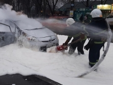 Во время движения по проспекту автомобиля Toyota Prius из-под панели в его салоне начал идти дым, после чего начался пожар. Водитель припарковал автомобиль возле остановки «Мельничная» и вызвал спасателей.
