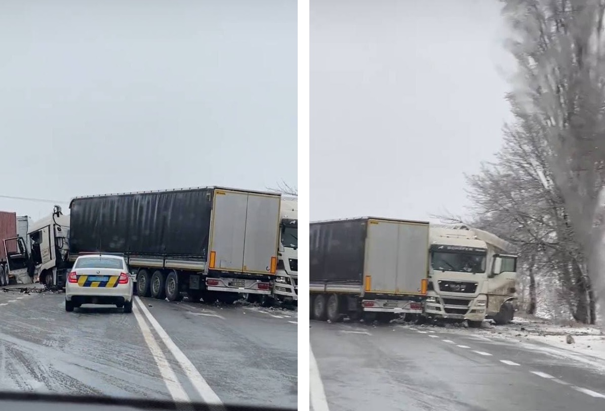 На одесской трассе в Николаевской области столкнулись несколько грузовиков