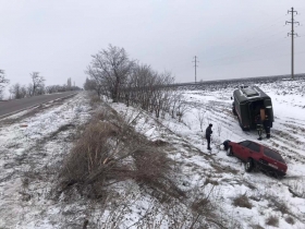 Сегодня, 8 февраля, на трассе в Николаевской области легковое авто слетело с дороги в кювет и перевернулось.
