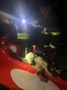 Уже затемно, аварийно-спасательное отделение спецчасти на катере спасли собаку, которая провалилась под лед на реке Ингул в микрорайоне Ракетное урочище.