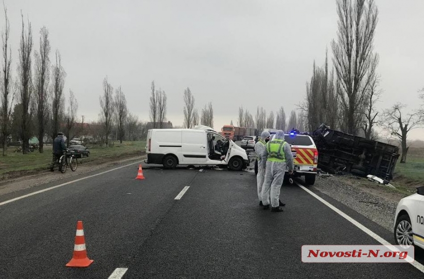 Утром в четверг, 15 апреля, на трассе Н-11 «Николаев-Днепр» возле села Михайло-Ларино Воскресенской ОТГ столкнулись микроавтобус Fiat Scudo и автомобиль «Укрпочты» Foton.