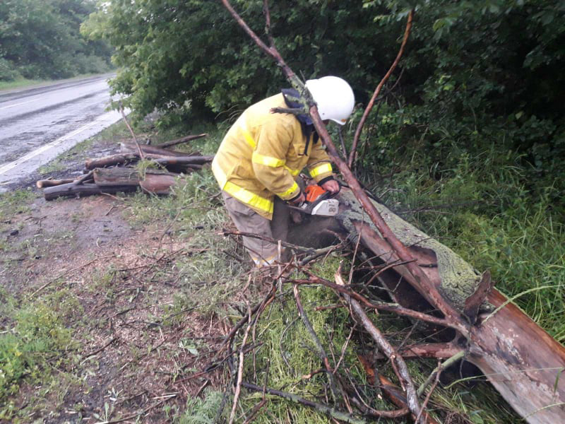 Вечером 15 июня спасателям сообщили, что на 101-м километре дороги Н-24 «Благовещенское — Николаев» в Вознесенском районе на проезжую часть дороги упало три дерева, частично перекрыв движение автотранспорта.