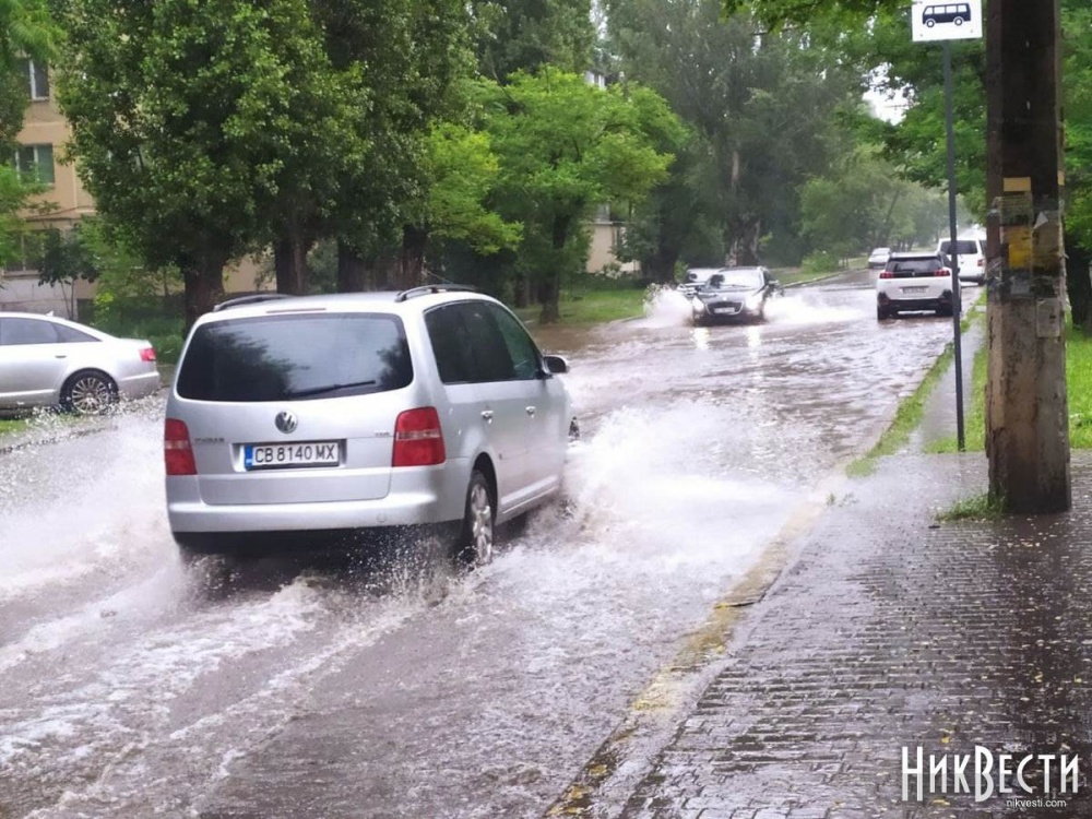 В Николаеве утром 17 июня продолжилась непогода в виде проливного дождя, из-за этого подтопленными оказались несколько улиц, в том числе и в центре города.