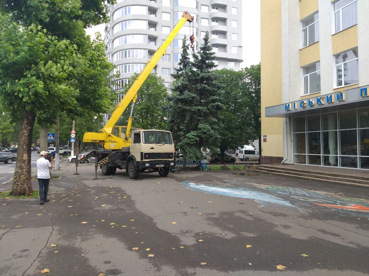 Дерево, упавшее утром на улице Адмиральской в Николаеве, подняли рабочие.