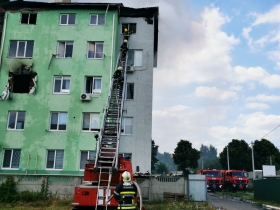 Огонь полностью разрушил семь квартир и кусок крыши, спасатели эвакуировали людей при помощи спасательных лестниц, часть пострадавших потеряли сознание.