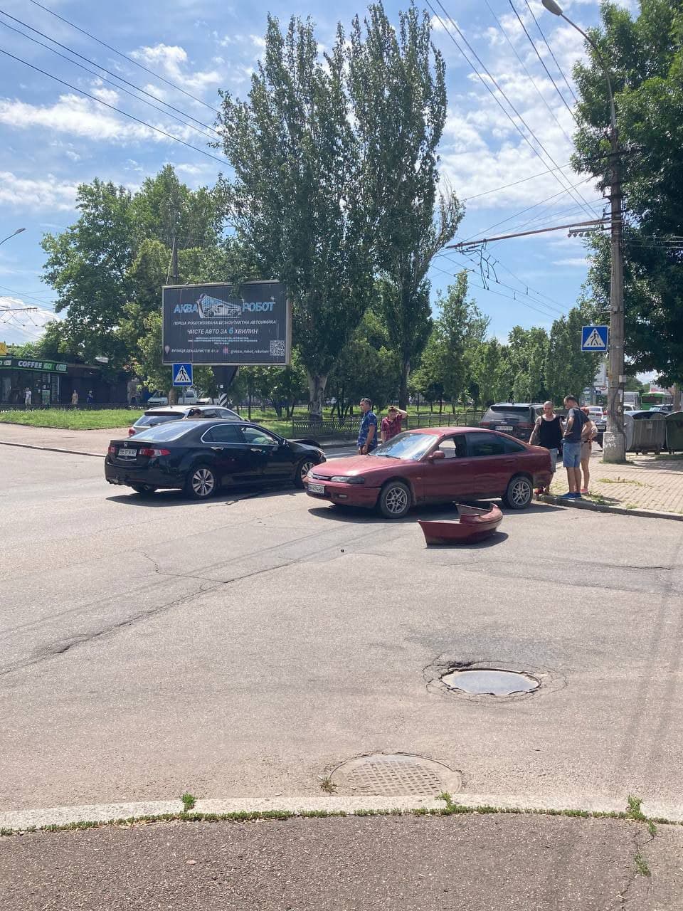 В Николаеве на пересечении улицы Фалеевской и Центрального проспекта автомобиль Mazda, нарушая правила, врезалась в Honda.