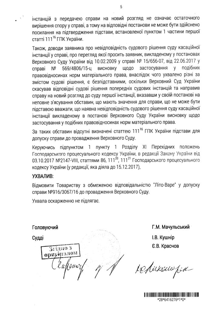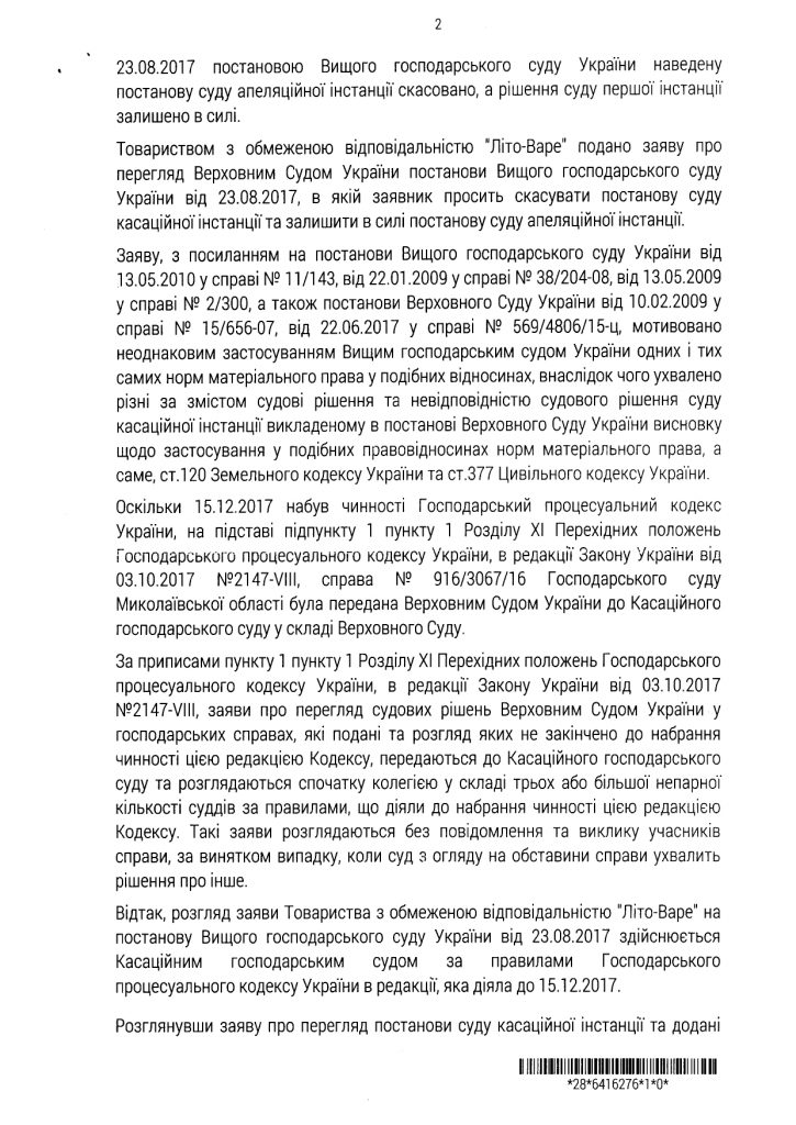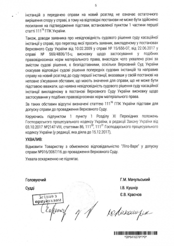 Также представители МП «Волна» и «АртМет» приложили копию решения Верховного суда Украины от 2018 года.