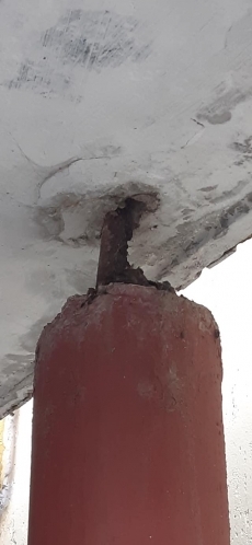 — Опора проржавела и превратилась в тонкий штырек, плитка под козырьком начала складываться домиком из-за проседания тяжелой конструкции, а сам он отделяется от подъезда в некоторых местах и имеет перекос. Жители очень переживают, мамы с детьми буквально прошмыгивают в подъезд. Активисты дома подали сегодня заявление в ЖЭК, но руководство ответило, что это не дело ЖЭКа, — сказано в сообщении.