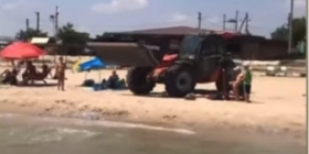 На одном из азовских курортов пригнали экскаватор, чтобы почистить пляж от медуз