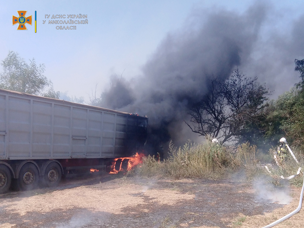 На Николаевщине во время сбора урожая загорелась фура