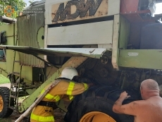 Во время работы на поле из молотильного барабана комбайна Fortschritt пошел дым. Не растерявшись, хозяин сразу «прибил» огонь огнетушителем и ждал пожарных.