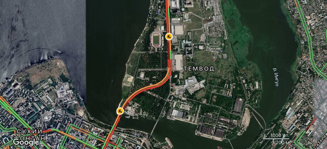 В Николаеве в пятницу, 6 августа, образовалась автомобильная пробка на Ингульском мосту и проспекте Героев Украины.