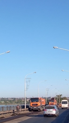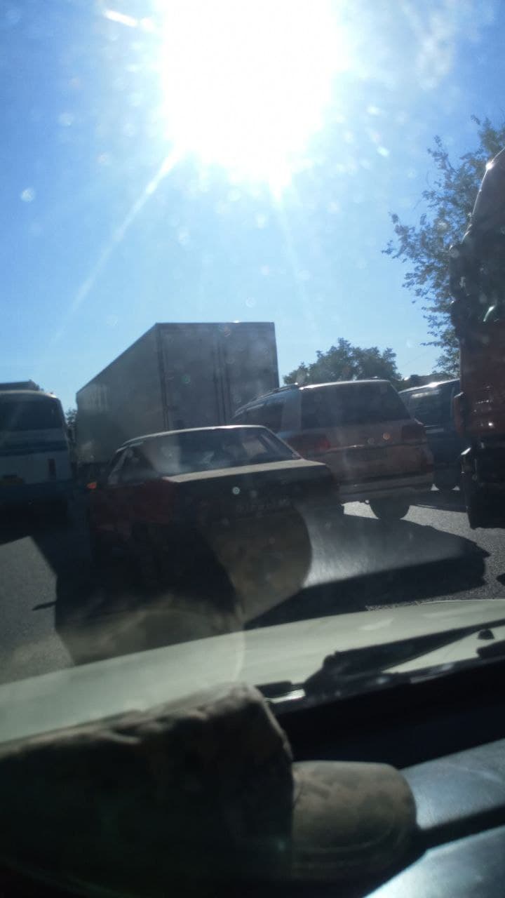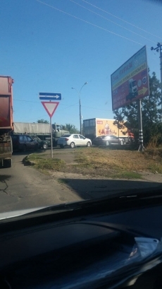 До этого была автомобильная тянучка и на Ингульском мосту, но к 9:30 движение улучшилось. Причина пробки в Соляных — большегрузы, которые направляются к Варваровскому мосту на одесское направление.