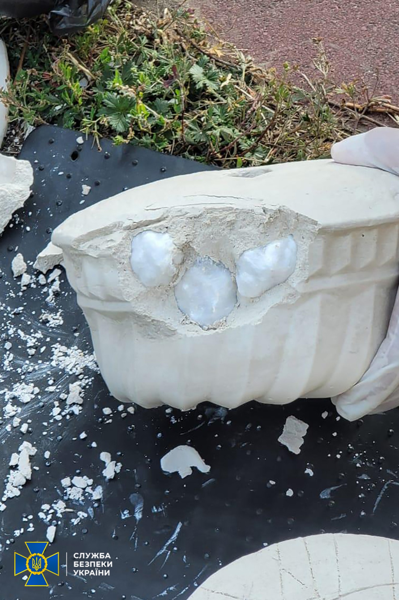 Ежемесячно злоумышленники делали по несколько «посылок» в Донецк, стоимость каждой из которых составляла почти 4 миллиона гривен. Наркотики прятали в кувшинах для вазонов и в садово-парковых скульптурах, которые переправляли сообщникам в Россию под видом бытовых посылок.