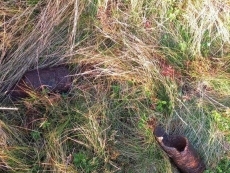 На месте взрыва осталась выбоина от детонации и куски ржавого железа, напоминающие обломки снаряда эпохи начала 20 века.