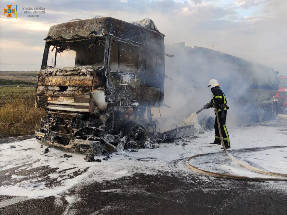 На трассе в Баштанском районе горела автоцистерна с подсолнечным маслом