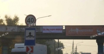 В Николаеве жителей города возмутил провокационный плакат. Его повесили на мосту перед Черноморским судостроительным заводом — с надписью «Да, мы один народ».