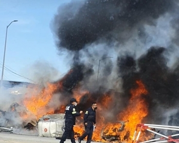 По предварительным данным, из-за неисправных тормозов водитель грузовика не справился с управлением и въехал в по меньшей мере девять находившихся в очереди транспортных средств. В результате столкновения несколько автомобилей загорелись.