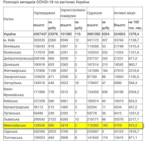 На Николаевщине выявили 990 подтвержденных случаев коронавирусной болезни COVID-19, еще 2 пациента умерли, сообщает Минздрав.
