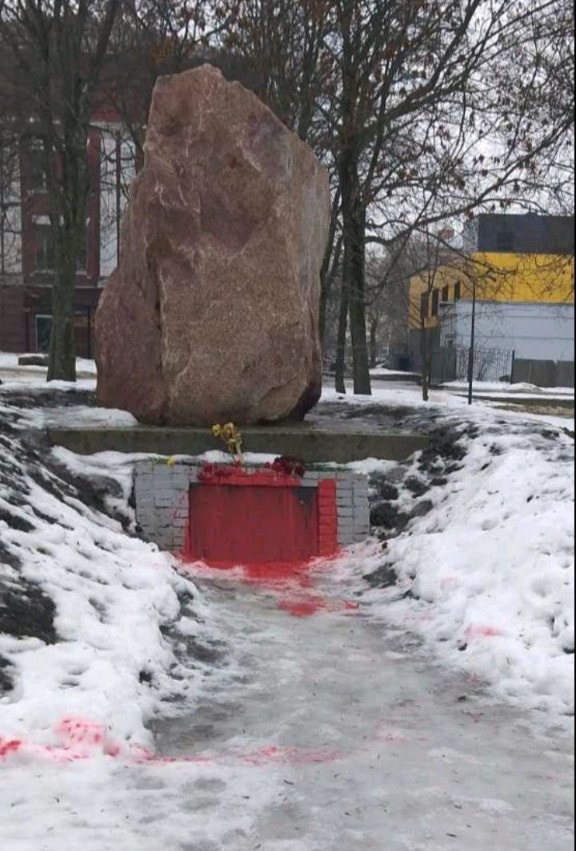В Харькове облили краской памятный знак погибшим воинам Украинской повстанческой армии.