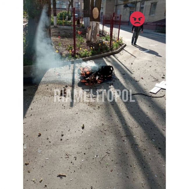 Около 8 утра в центре Мелитополя прогремел взрыв. Сообщают, что на парковке за супермаркетом Сильпо по пр. Богдана Хмельницкого взорвался заминированный скутер.
