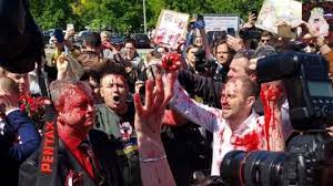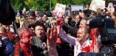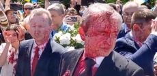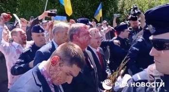 Позже в социальных сетях украинские активисты рассказали, что краской, которая имитирует кровь, они облили себя, но попало и на посла и его коллег. Под крики «Фашисты» они уехали так и не возложи цветы.