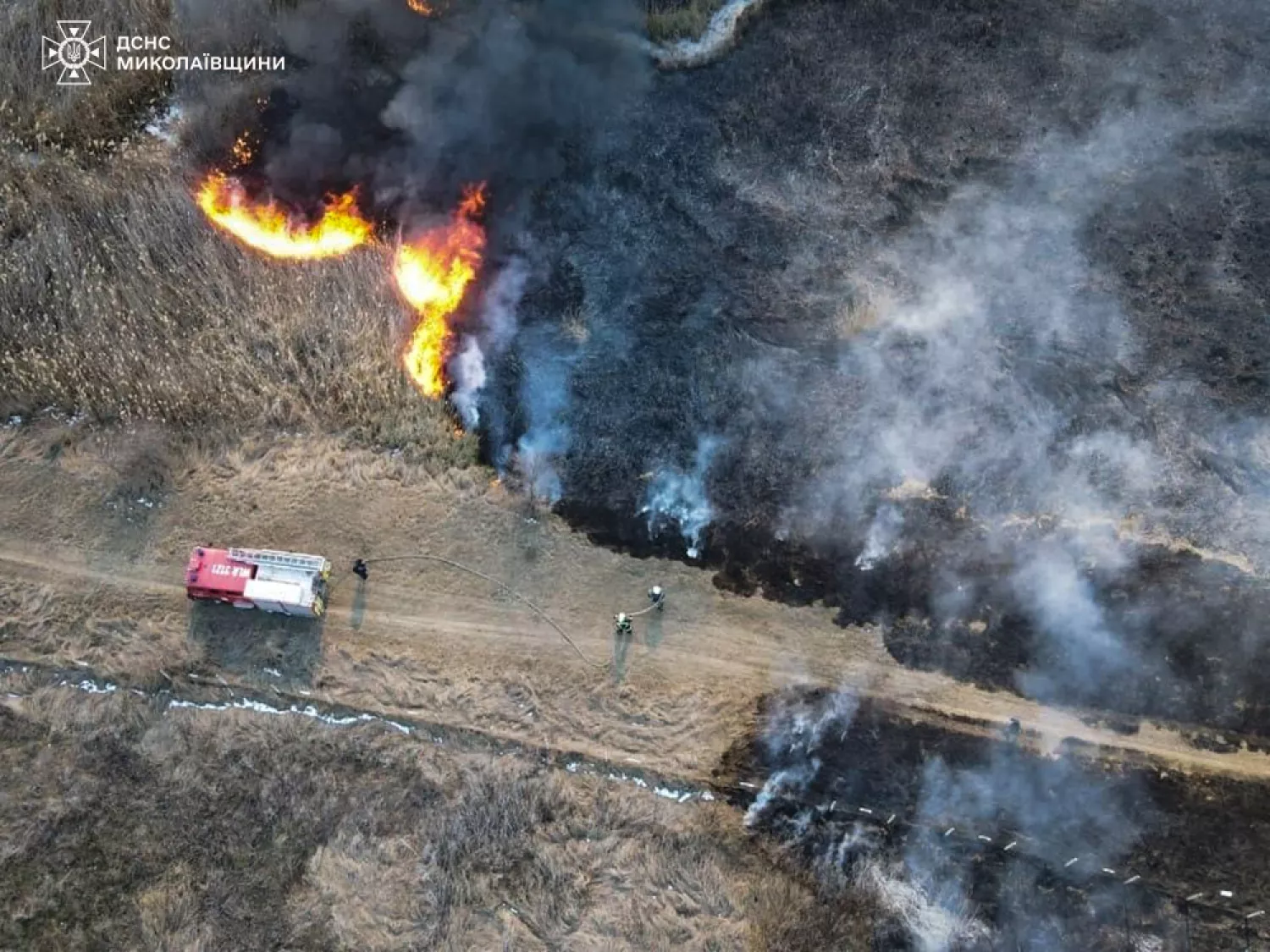 Дим від займання було видно здалеку, повідомили у ДСНС Миколаївської області 25 лютого.
