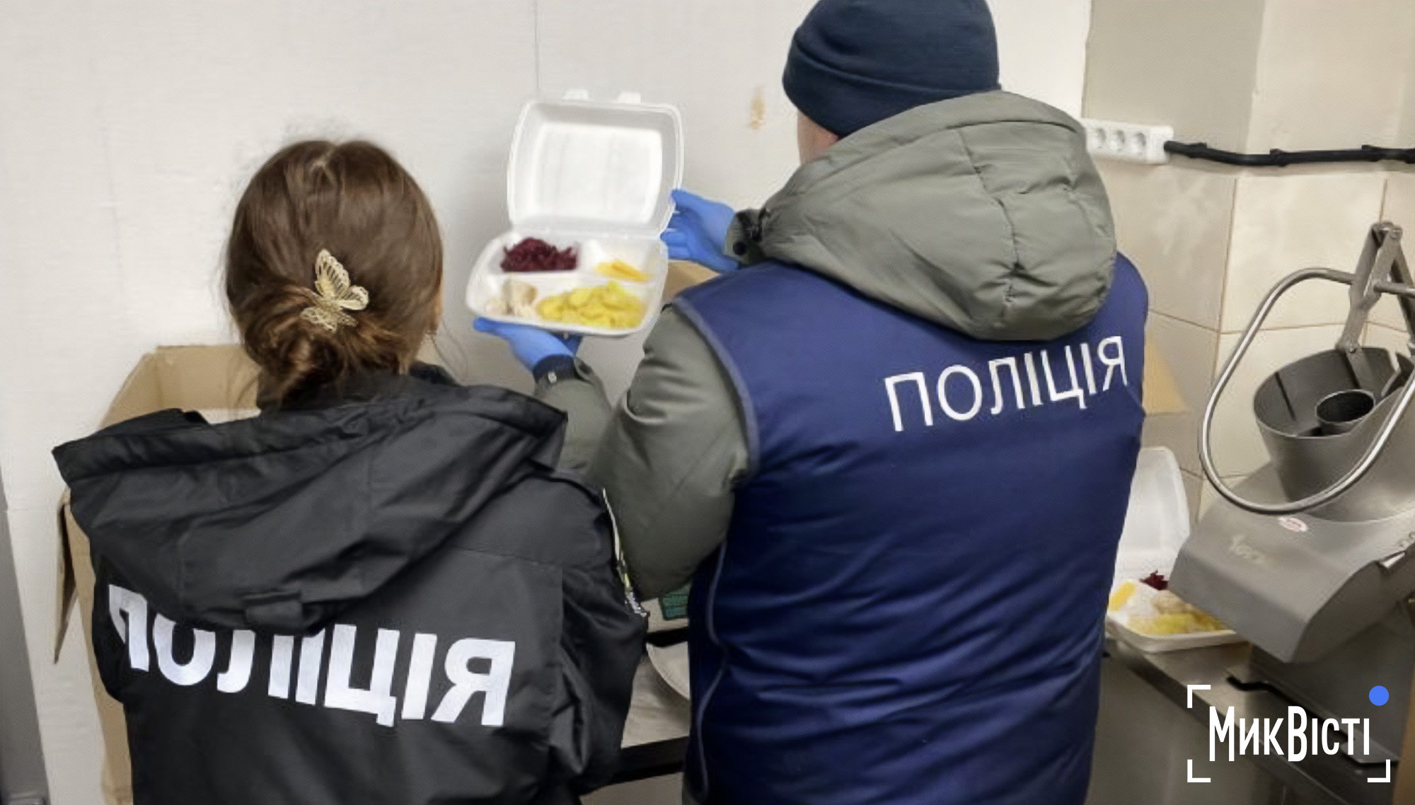 Співробітники поліції беруть зразки їжі ТОВ «ПРОССЕККО 8» під час слідчих дій 12 грудня. Фото джерел МикВістіУ вилучених зразках страв, якими компанія ТОВ «Проссекко 8» планувала годувати школярів у Миколаєві, знайшли бактерії групи кишкової палички.