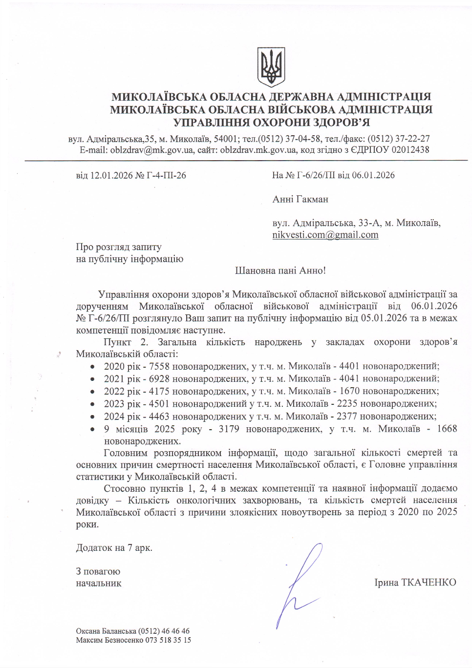Зазначається, що у 2020 році народилося 7 тисяч 558 дітей, із них 4 тисячі 401 у Миколаєві. У 2021 році народилися 6 тисячі 928 немовлят, 4 тисячі 41 з яких у Миколаєві.